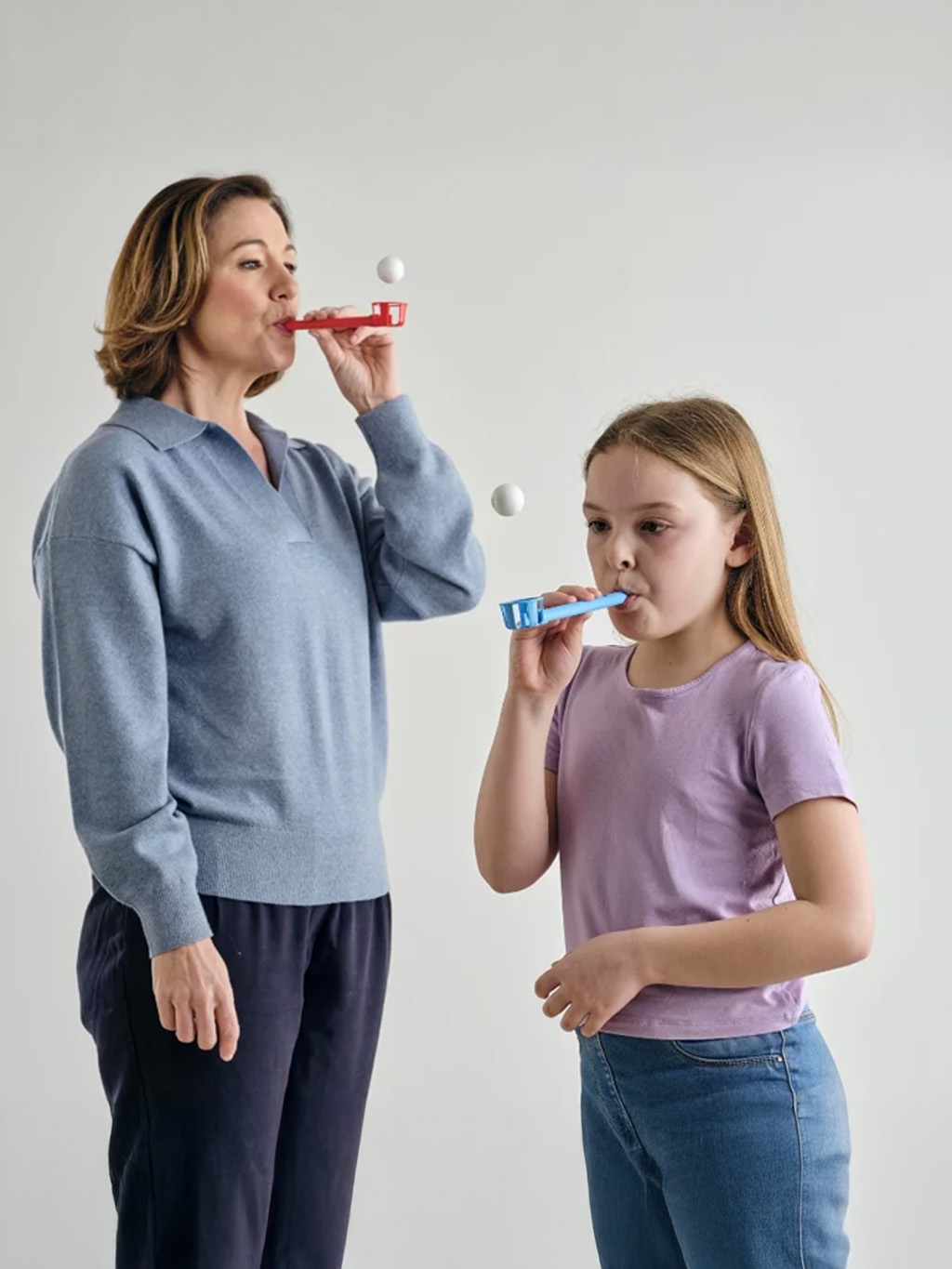 Dmuchaj w ustnik tak, aby unosić piłeczkę i utrzymywać ją jak najstabilniej.