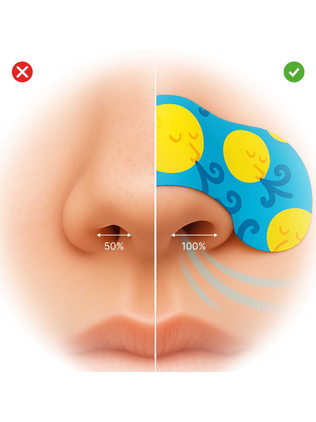 Proddechowe plastry na nos dla dzieci, które pomogą Ci zniwelować problem otwartej buzi, problemy logopedyczne lub ciężki oddech podczas snu. Wykonane z materiału, który jest bezpieczny dla skóry dziecka, dodatkowo specjalny wzór zachęca do stosowania. Zdrowy sen pozwala obudzić się wypoczętym, a Twoje dziecko rozpocznie dzień pełne energii! Zastosowany klej przytrzyma plaster na nosie przez całą noc bez odczucia dyskomfortu.