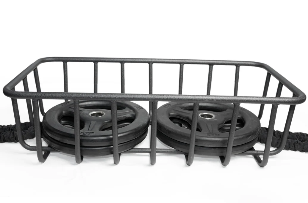 Możesz przymocować go do TANK Torque Fitness i wrzucić do niego dodatkowe obciążenie lub sprzęt który chcesz zabrać ze sobą na trening w teren. Kształt konstrukcji koszyka sprawia, że będzie on stabilnie leżał na wózku treningowym niezależnie od tego czym go wypełnisz.