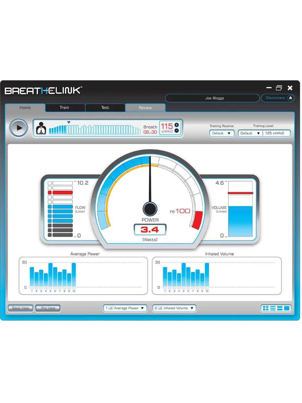 Inteligentny IMT z oprogramowaniem Breathe-Link® dla treningu, testów i monitoringu na poziomie pro. Automatycznie dobiera obciążenie, stosuje tapered flow (opór zmienny w trakcie wdechu) i mierzy kluczowe wskaźniki: Load, Power, Volume, Flow, Energy oraz S-Index®. Na urządzeniu zobaczysz wyniki i historię 36 sesji, a w Breathe-Link poprowadzisz nawet 10 profili użytkowników (do 1200 sesji/os.).
