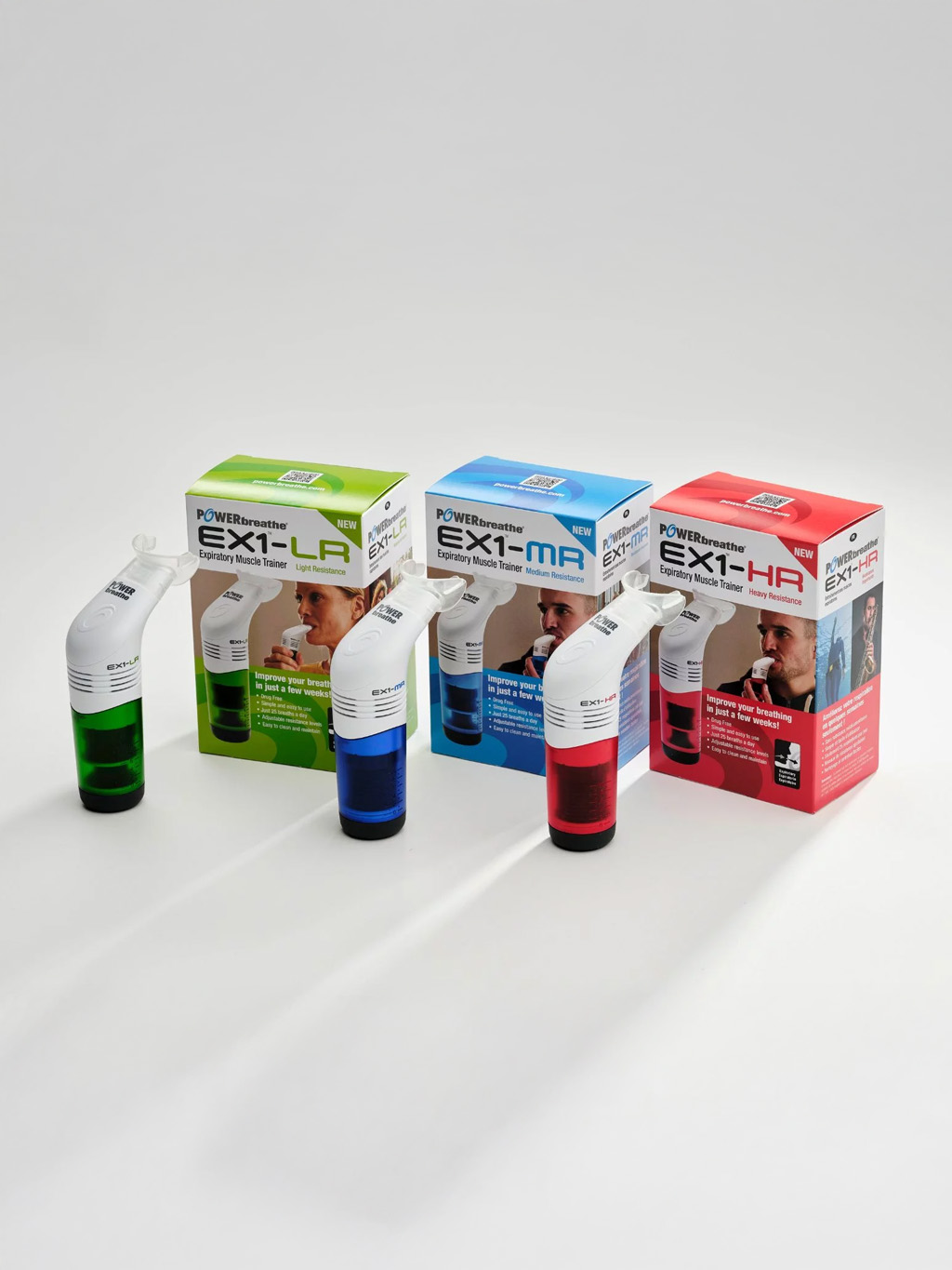 Silniejszy wydech = lepsza kontrola oddechu. EX1 trenuje mięśnie wydechowe przy użyciu regulowanego oporu progowego. Kilka krótkich sesji dziennie wzmocni brzuch i mięśnie klatki wspierające kaszel, emisję głosu i wysiłek.